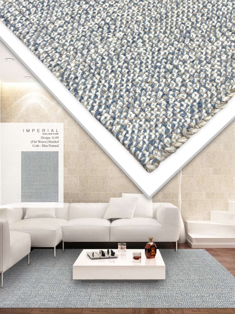 Flat Weave Braided Code : Blue / Natural